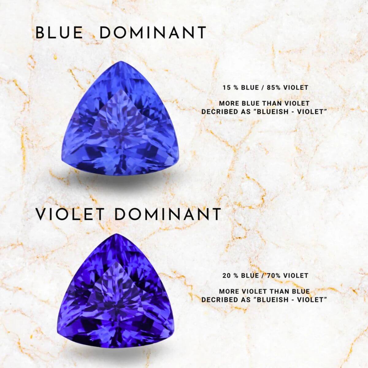 Ultimately, it is a matter of your taste and preference. All tanzanite displays a mix of both blue and violet when viewed from different angles, and there is no price difference between blue- or violet-dominant stones.