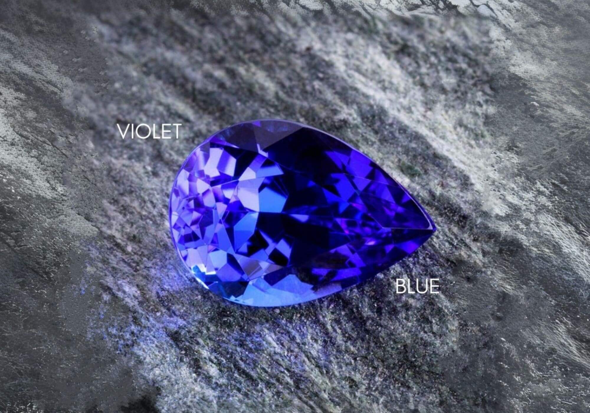 Tanzanite always displays a mix of blue and violet. However, one color will usually appear more dominant.