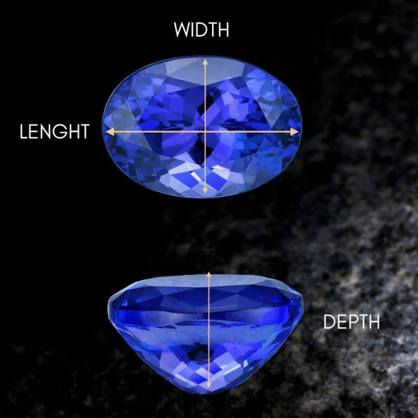 Unlike for diamonds, carat weight alone may not accurately reflect the size of your tanzanite. Because of variations in cut, it is easy for two colored stones with identical carat weight to look completely different. Thus, the best way to judge a tanzanite’s actual size is its “face-up”, or the diameter measurements of length and width.