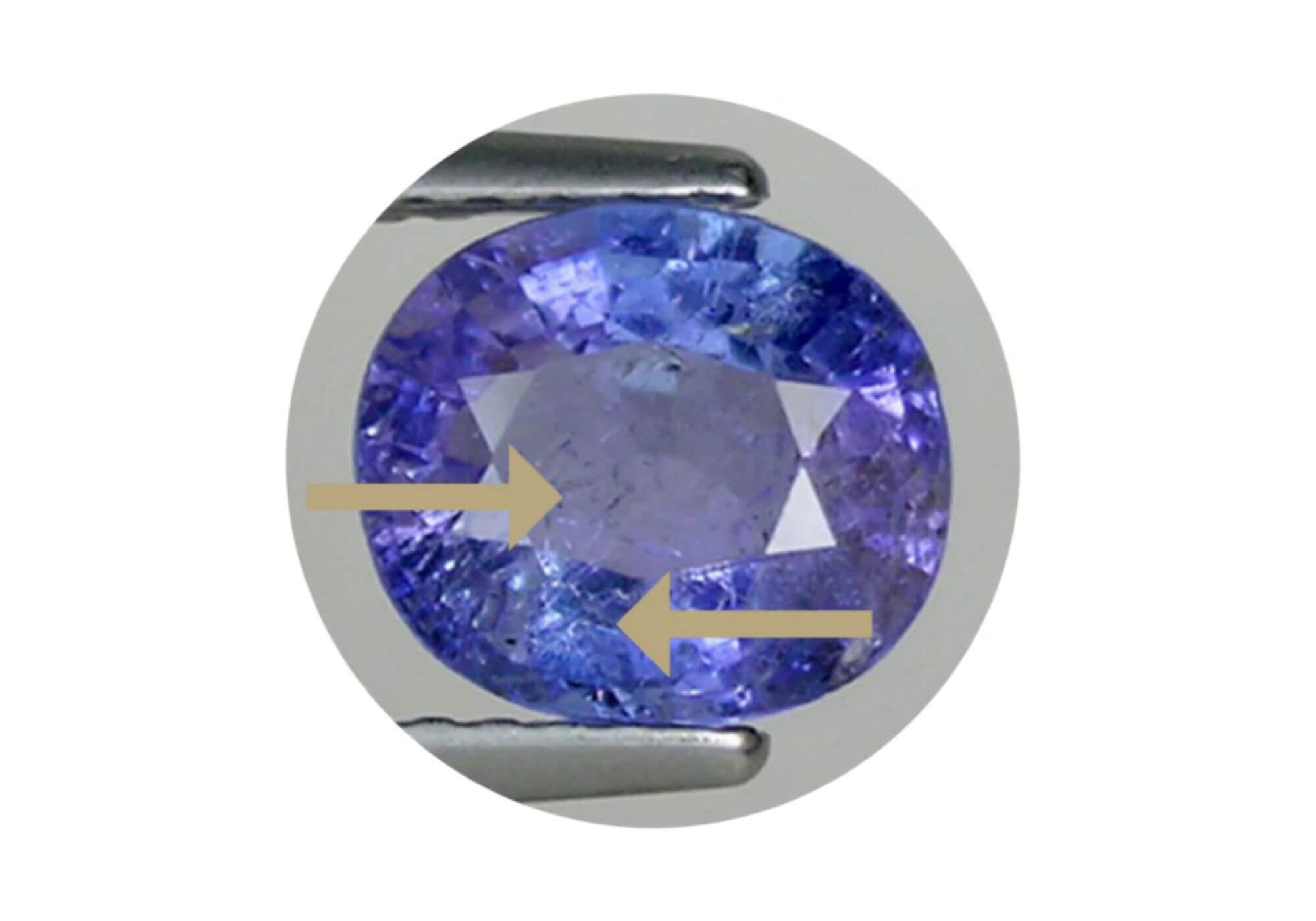 A example of a heavily included tanzanite. Tanzanite Direct only sells flawless tanzanites, which are “eye clean” and free from inclusions