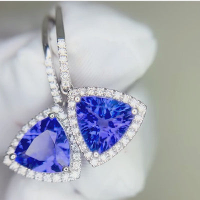 3.97 Ct Tanzanite Trillion Cut & Diamond Drop Earrings Sale price$4,154.00 NZD Regular price$5,366.00 NZD