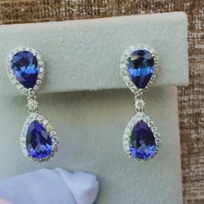 Double Pear-Shaped Tanzanite & Diamond Halo Earrings