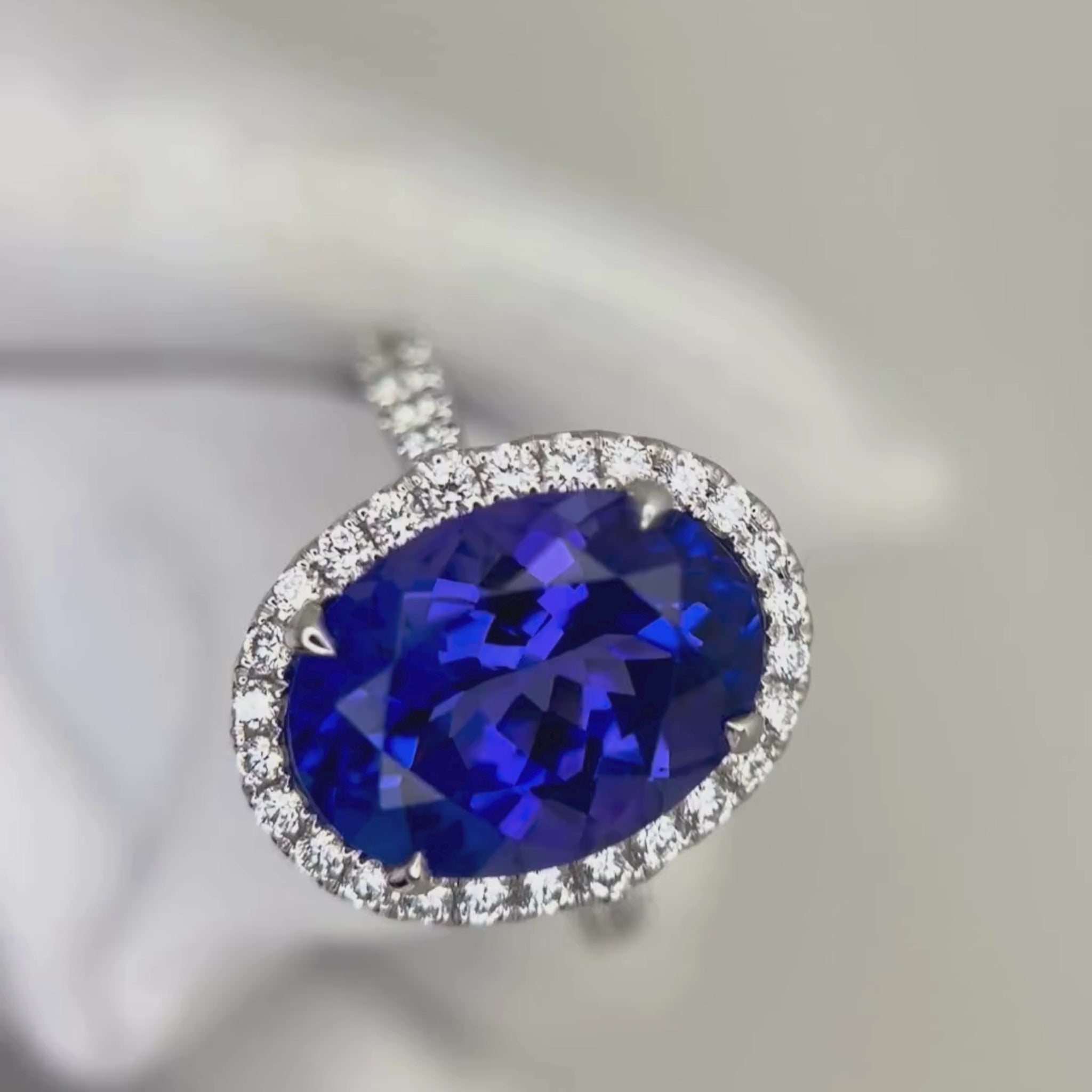 Exceptional Tanzanite 5.00 carat Oval Diamond Halo Ring
