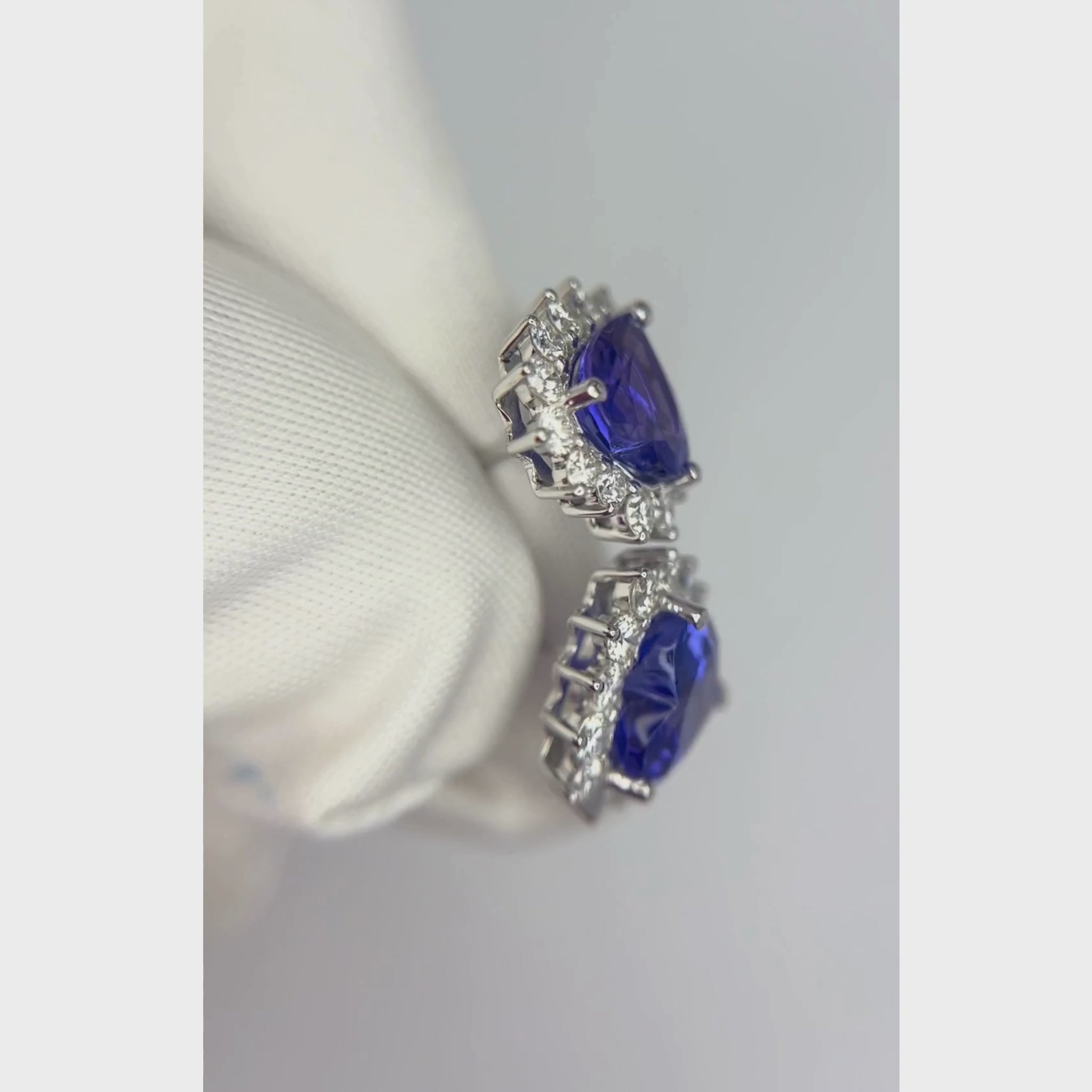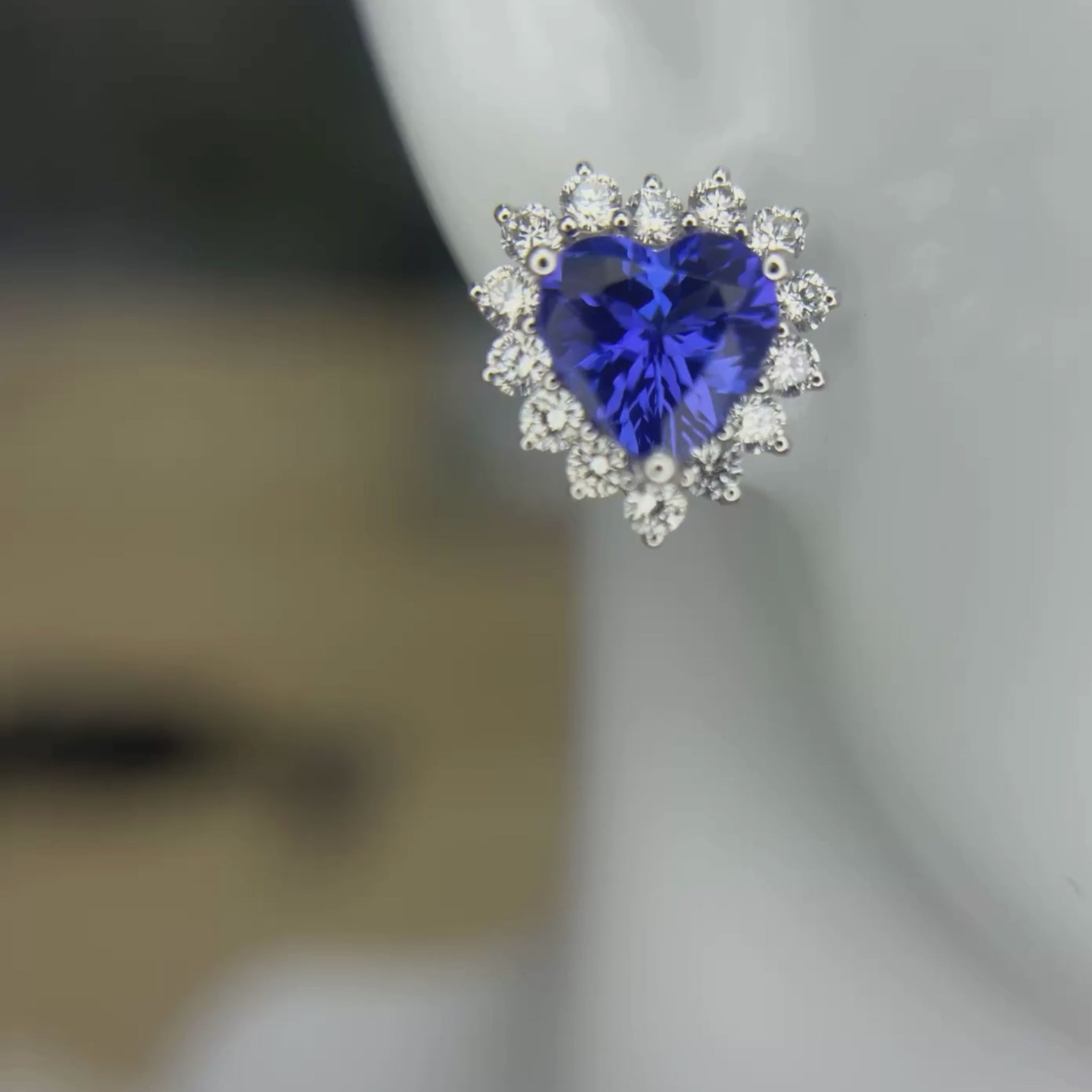 The prettiest heart-shaped tanzanite stud earrings you’ll ever see — vivid, bright, and beautifully alive with colour. Each stone is a strong, vivid blue with just the slightest hint of violet, glowing with light rather than deep and velvety tones. Flawless and wearable, they’re surrounded by a delicate ruffle of sparkling diamonds that accentuates their graceful heart shape.