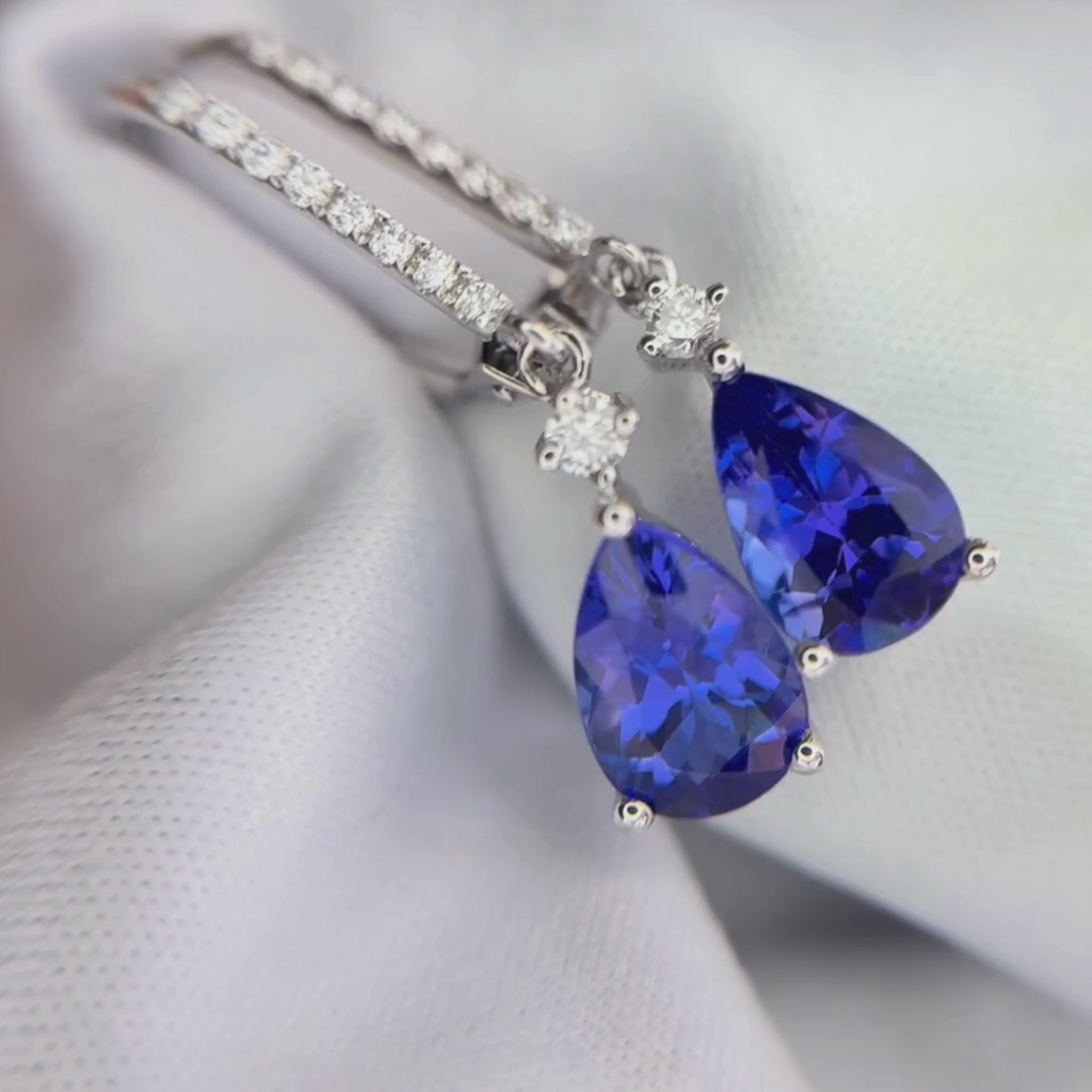 Pear-Shaped Tanzanite & Diamond Drop Earrings in White Gold