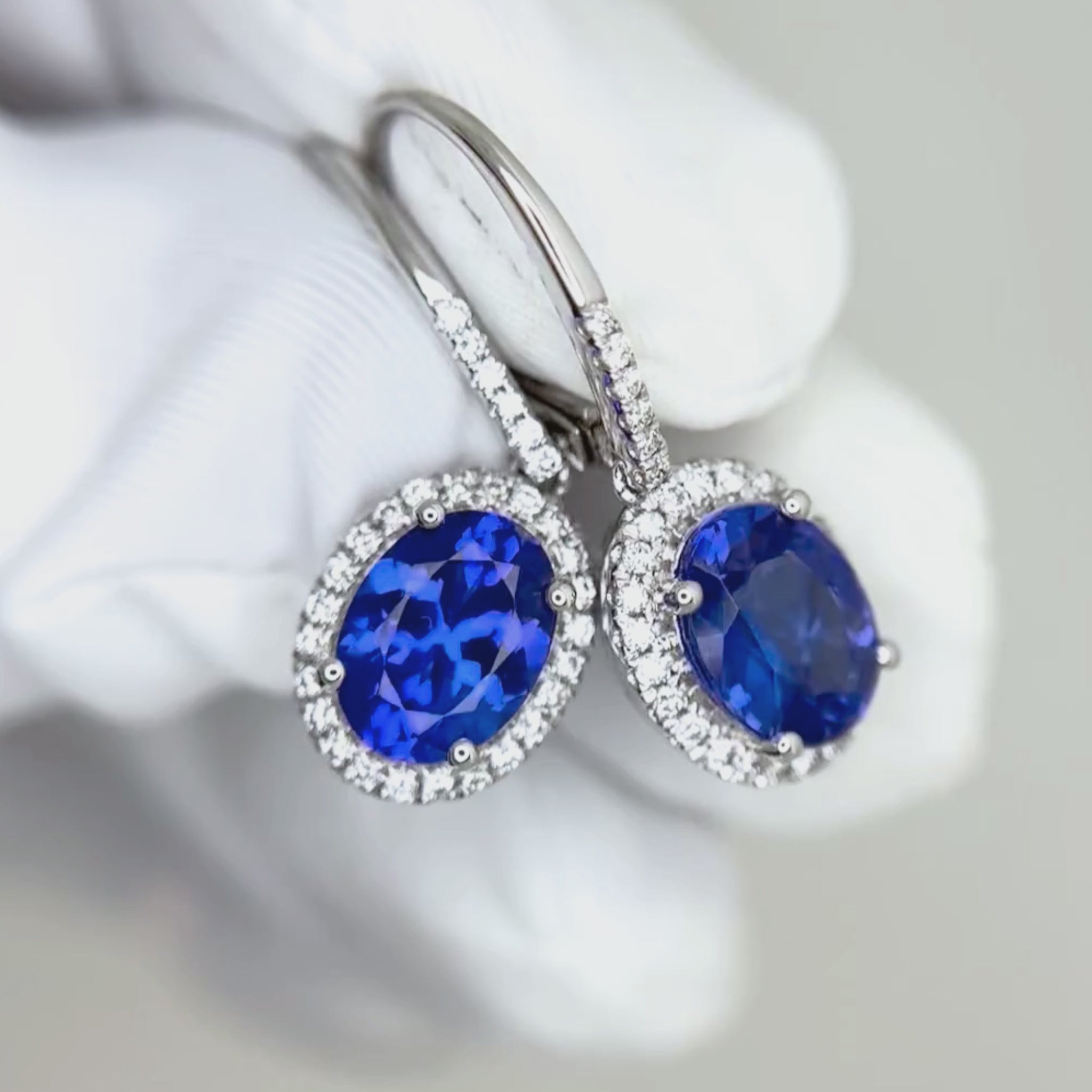 Tanzanite & Diamond Halo Drop Earrings