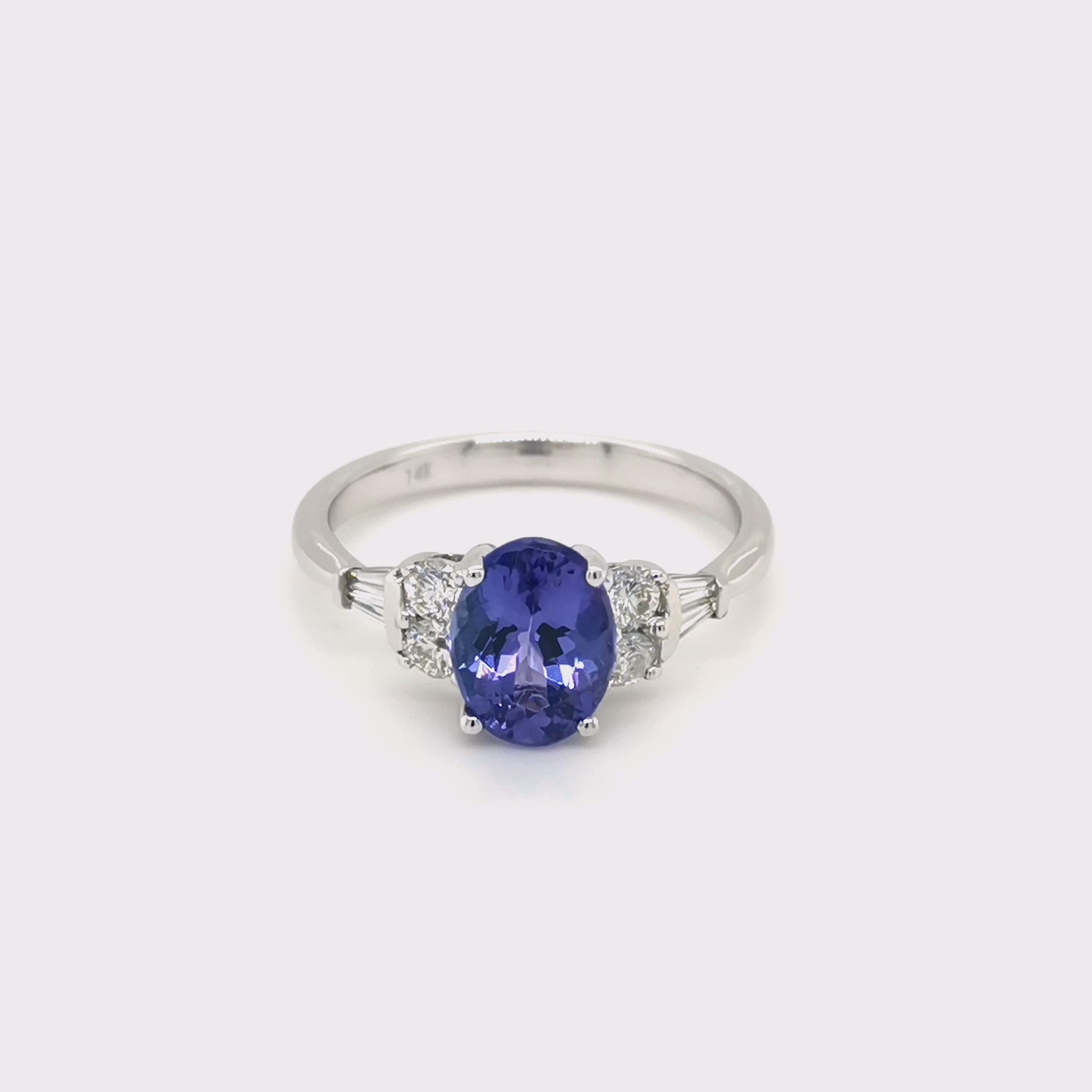 “Balmoral” Oval Tanzanite & Baguette Diamond Engagement Ring