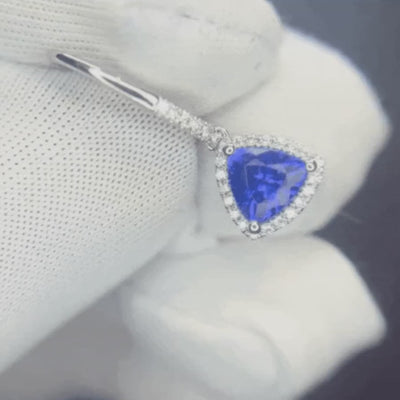 Trillion Cut Tanzanite & Diamond Halo Dangle Earrings Sale price$1,954.00 NZD Regular price$2,665.00 NZD